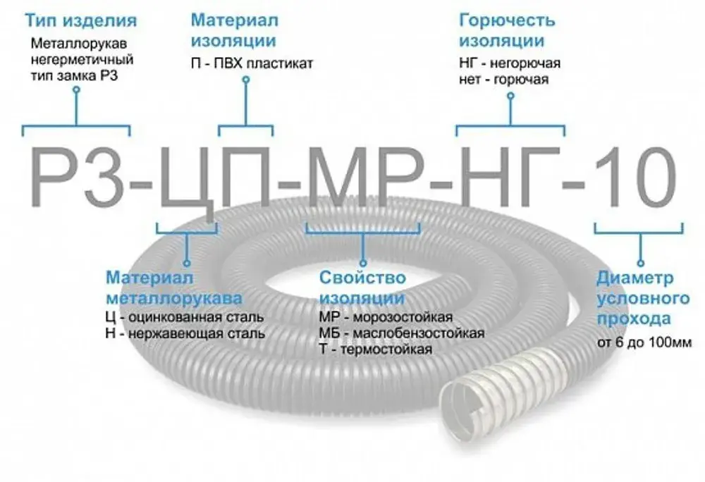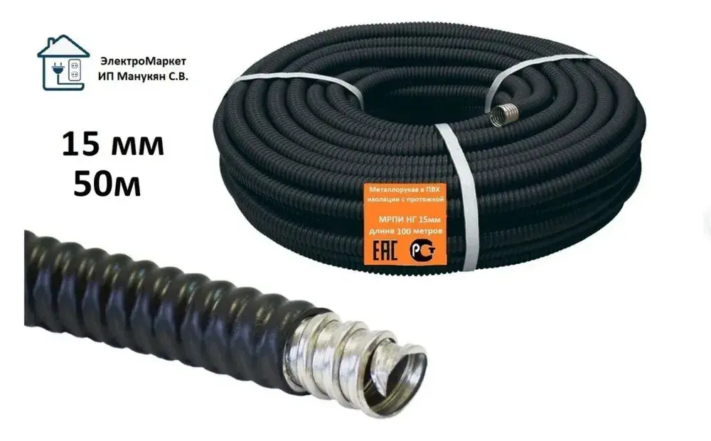 Металлорукав в ПВХ типа МРПИ НГ с протяжкой 15 мм предназначен для защиты от механических повреждений электротехнических кабелей, линий связи, в системах кондиционирования воздуха, обогрева, местной вытяжной вентиляции, а также других проводниковых коммуникаций. Кабель, уложенный в металлорукав, надежно защищен от перегибов, передавливания, вытягивания, порезов и других факторов воздействия окружающей среды. Металлорукав в ПВХ изоляции обеспечивает герметичный монтаж кабельной магистрали и защиту от поражения токами утечки. ПВХ оболочка обеспечивает водонепроницаемость, стойкость к вредному воздействию окружающей среды, и даёт абсолютно герметичность. Стальная проволока (протяжка или зонд) внутри металлорукава, обеспечивает быструю и удобную протяжку кабеля при монтаже без дополнительных приспособлений. Металлорукав пожара безопасно при температурах до +300 °