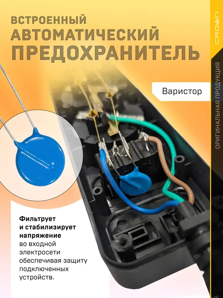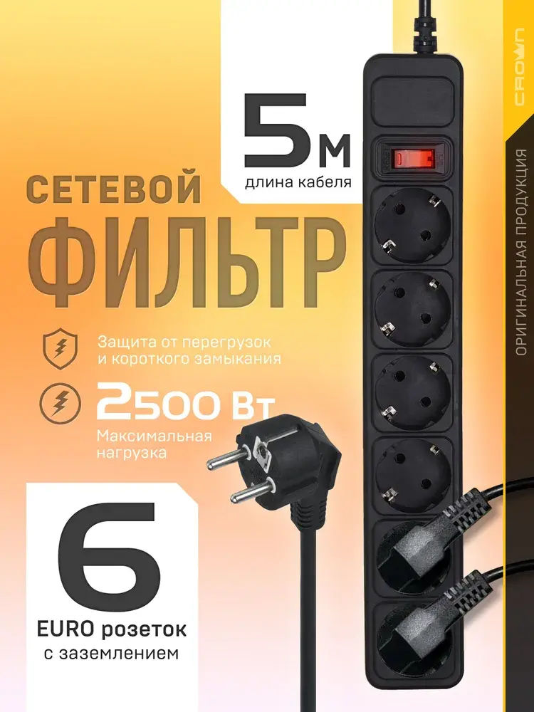 Сетевой фильтр-удлинитель — это незаменимый помощник для дома, дачи или офиса. Он позволяет подключить к сети сразу несколько устройств, таких как техника, инструменты или освещение. Преимущества сетевого фильтра-удлинителя: * Защищает от перегрузок и коротких замыканий. Встроенный предохранитель и выключатель обеспечивают дополнительную безопасность при использовании. * Увеличивает количество доступных розеток. Позволяет подключить больше устройств без необходимости использования тройников или переходников. * Обеспечивает удобство подключения техники. Имеет длину 3 метра, что позволяет разместить его в удобном месте и избежать перегрузки соседних розеток. Сетевой фильтр выполнен из качественных материалов, что обеспечивает долгий срок службы. Он имеет нейтральный дизайн, который подойдет под любой интерьер. Сетевой фильтр - удлинитель 6 EURO розеток с заземлением CROWN CMPS-06 предназначен для обеспечения защиты от короткого замыкания и перегрузки во входной электросети. Максимальная нагрузка составляет 2500 Ватт, что позволяет подключать компьютерную, видео и аудио бытовую технику без опасения перегрузки системы. Удлинитель оснащен 6 шт. ЕВРО розетками с заземлением, что обеспечивает надежное подключение устройств. Кроме того, присутствует выключатель питания с подсветкой, который позволяет управлять питанием устройств с удобством и безопасностью. Входной кабель питания имеет сечение 0,75 кв. мм и длину 5,0 метров, что обеспечивает достаточную гибкость и удобство при подключении к источнику питания. Сетевой фильтр - удлинитель 6 EURO розеток с заземлением CROWN CMPS-06 - надежное и удобное устройство для подключения и защиты вашей техники от перегрузок и коротких замыканий. Особенности: Защита от короткого замыкания и перегрузки во входной электросети; Максимальная нагрузка 2500 Ватт; 6 шт. ЕВРО розеток c заземлением для подключения компьютерной, видео и аудио бытовой техники; Выключатель питания с подсветкой; Входной кабель питания сечение 0,75 кв. мм, длина 5,0 м; Возможность крепления на стену. Используйте сетевой фильтр-удлинитель для подключения бытовой техники, электроинструментов, осветительных приборов и других устройств. Благодаря его удобству и безопасности, он станет незаменимым помощником в вашем доме, на даче или в офисе.