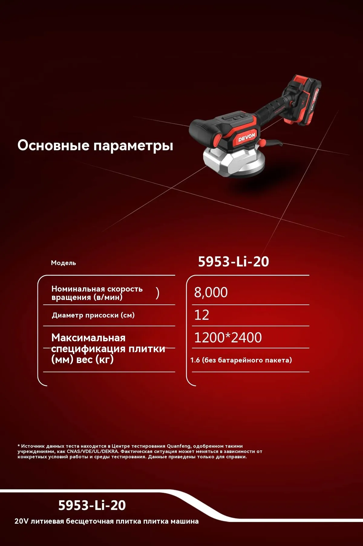 DEVON Литиевый бесщеточный выравниватель плитки 5953-li-20