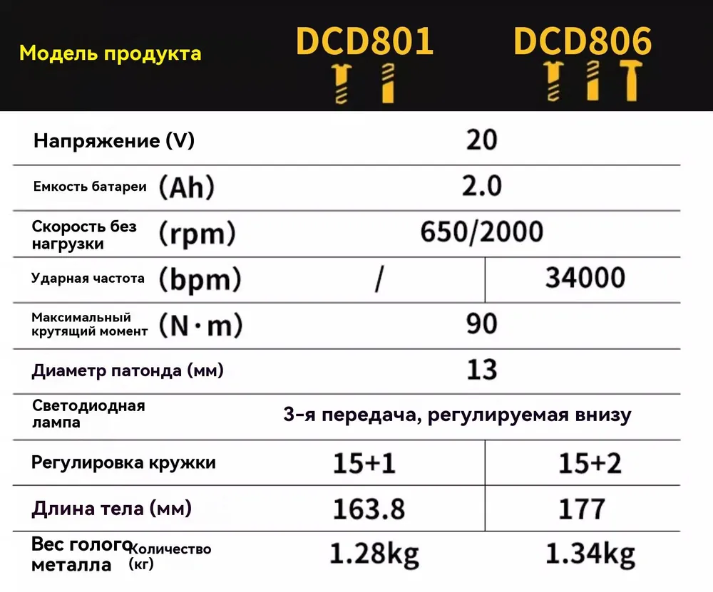 DeWalt DCD806 Дрель-шуруповерт, Компактная ударная дрель 20 В литий-ионная бесщеточная