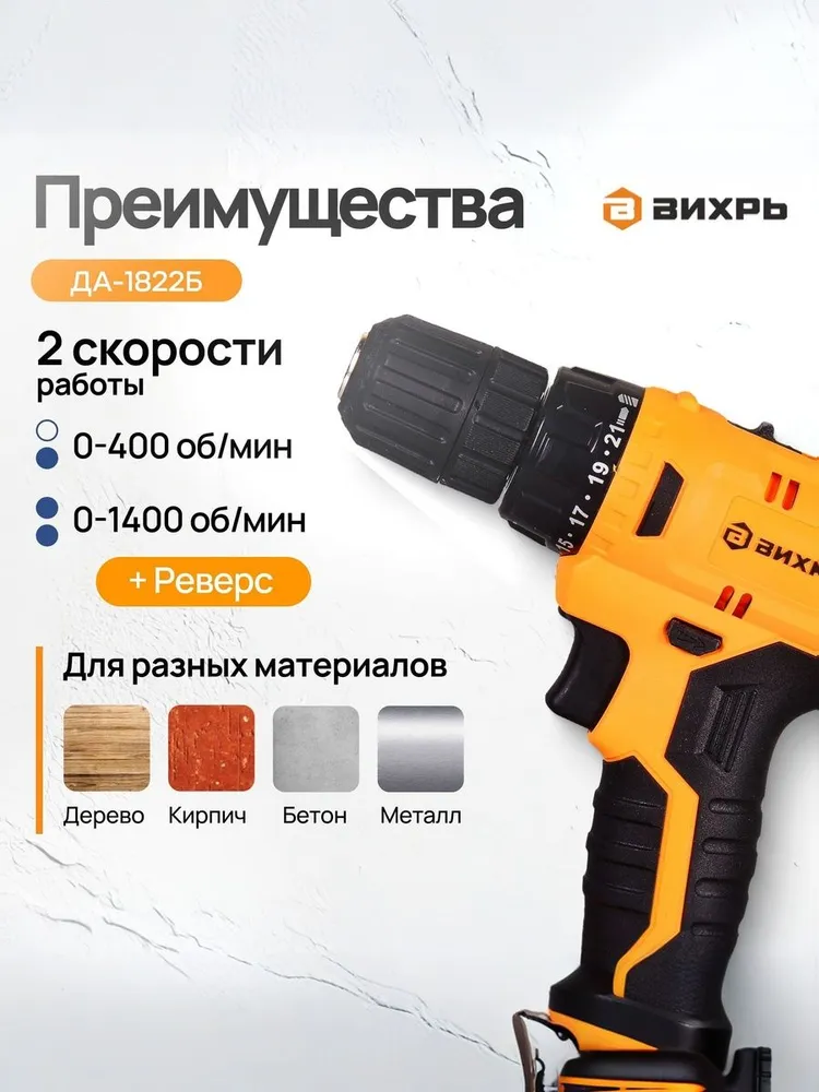Дрель-шуруповерт аккумуляторный 18В в кейсе 45 Нм, ДА-1822Б / 2 АКБ в комплекте.