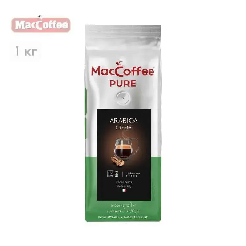 Кофе в зёрнах MacCoffee PURE Arabica Crema, 1 кг