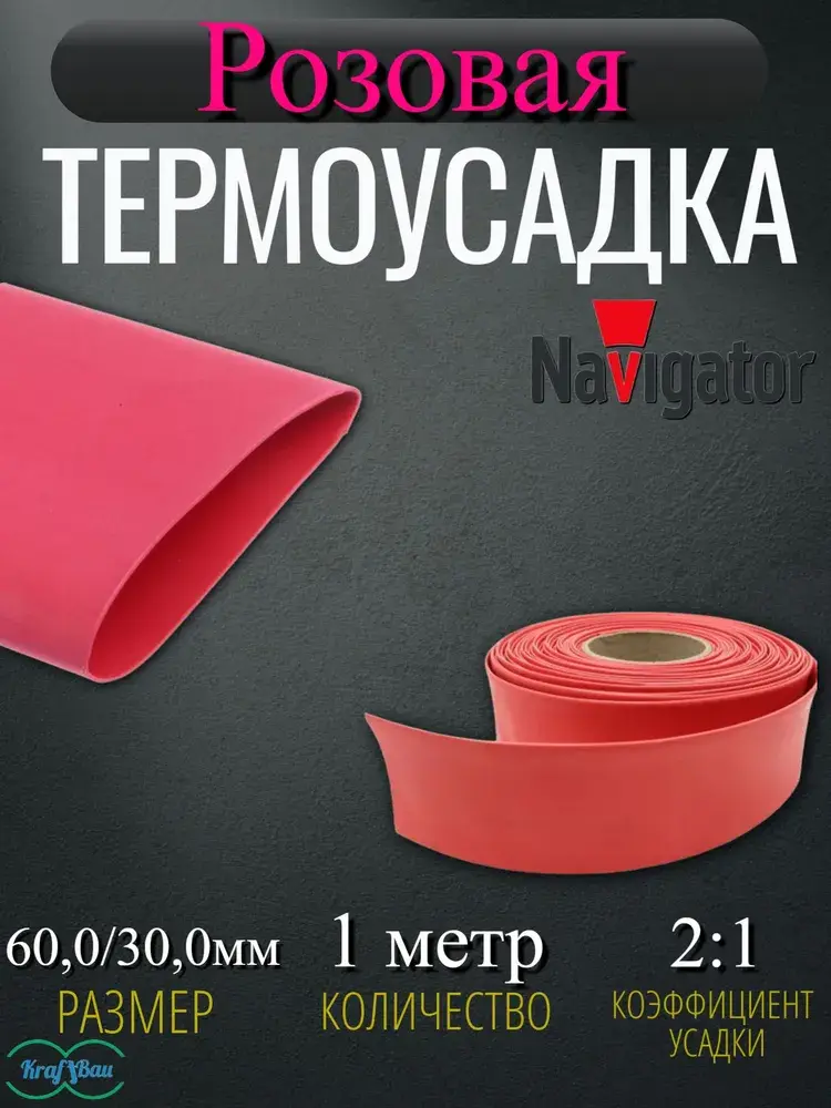 Термоусадка для проводов розовая Navigator 60.0/30.0мм 1метр