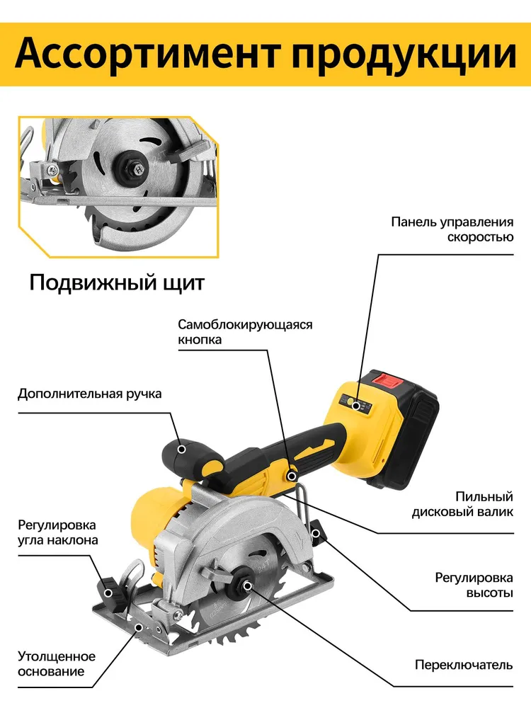 Циркулярная пила аккумуляторная , 6500 об.мин/Пила циркулярная дисковая аккумуляторная 1 акб, диск 125мм, пропил до 50мм