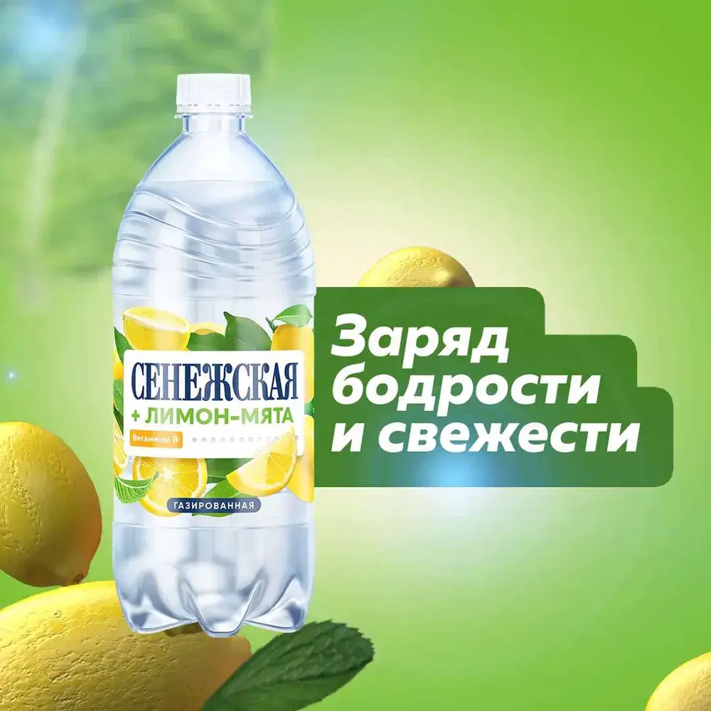 Вода газированная Сенежская Лимон-Мята, 1 л